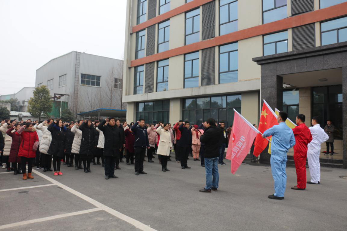 迎風飄揚。升旗儀式結束后,彭經理攜全體員工面向國旗、廠旗,舉行了莊嚴的宣誓。